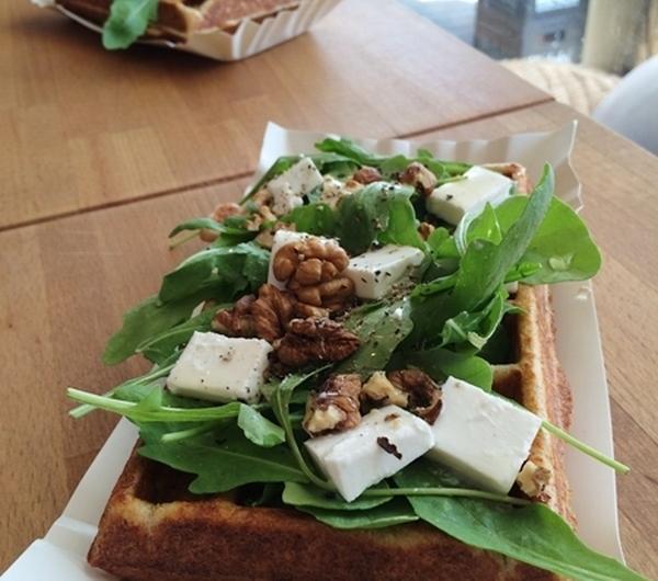 banana bread with dates and cashew nuts served with desiccated coconut and grapefruit juiceWstąpiłyśmy też do Gofiarni . Już pewnie wiele osób o niej słyszało i potwierdzam pozytywne opinie - gofry były świetne! Nasz wybór to