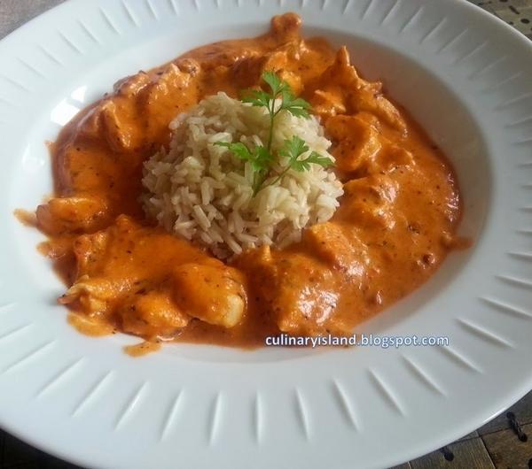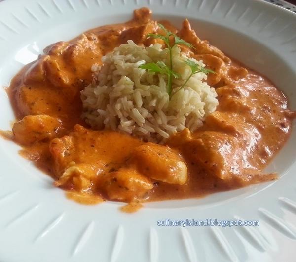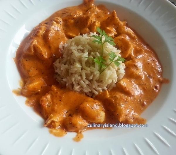 3. Danie z kurczakiem, ryżem i sosem pomidorowym z jogurtem naturalnym.
