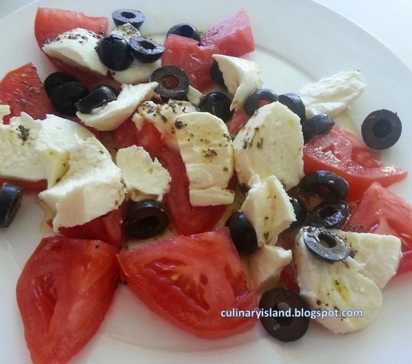 2. sałatka z mozzarellą numer dwa, tym razem brakowało świeżej bazylii, ale były czarne oliwki :)