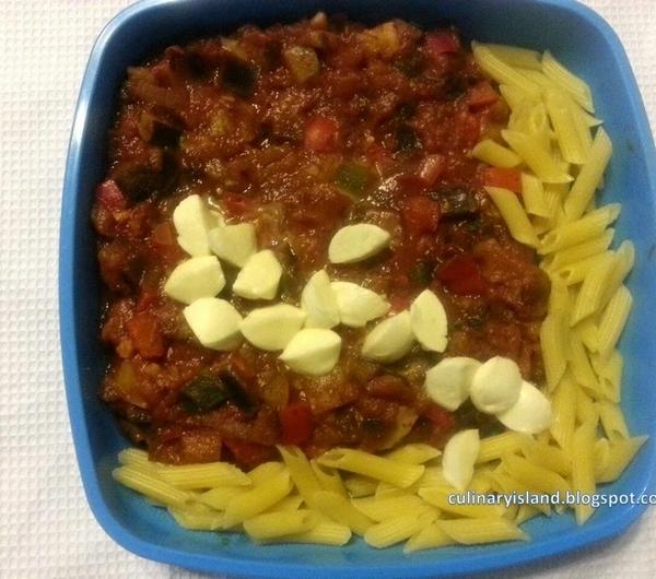 3. Obiad do pracy - blog doczekał się takiej serii, ale mam wrażenie, że podobny obiad już pokazywałam. Tutaj makaron z duszonymi warzywami i kulkami mozzarelli.