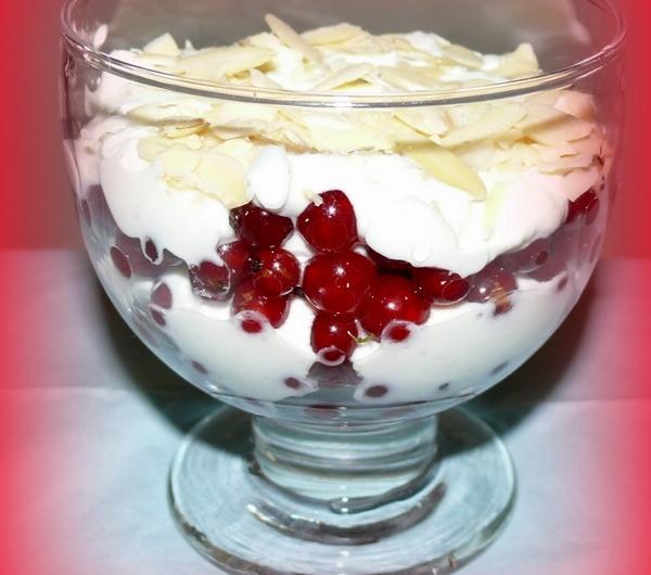 Cookit - przepis na pucharek porzeczkowy z serkiem słodzonym stewią i migdalami