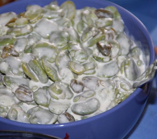 Sezon na bób rozpoczęty. Uwielbiam. Nawet Bąbel się skusił i sam sobie go obiera i zjada. Z bobu można wiele, jeść po prostu ugotowany, robić sałatki, dodawać do farszu np lazanii. Możliwości jest mnóstwo.1/2 kg bobu4 łyżki kaparów1/2 szklanki kwaśnej śmietany3 łyżki majonezu3 ząbki czosnkusok z cytrynysól, biały pieprz, cukier i gałka muszkatołowa.Ugotować bób w osolonej i lekko osłodzonej wodzie. Przelać zimną wodą i obrać. Wrzucić do salaterki i dodać kapary. Robimy sos, mieszamy śmietanę z majonezem, dodajemy przeciśnięty przez praskę czosnek, doprawiamy do smaku i wlewamy do bobu. Trochę schłodzić. Pycha.inspiracja :Palce lizać