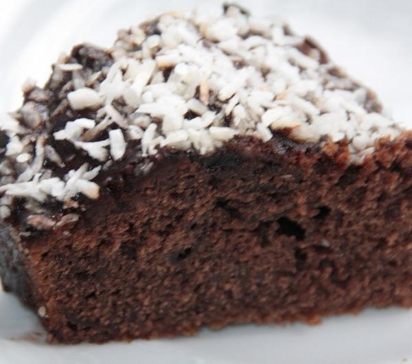 białek. Piecze się w 180 stopniach przez 40 minut, do suchego patyczka. Kiedy przestygnie polewam odlaną polewą i posypuję wiórkami.Aby ciasto nie przywarło do foremki można spryskać ją tłuszczem w spray'u Bake Easy, wyłożyć papierem do pieczenia, lub pominąć papier a wysmarować tłuszczem i wysypać