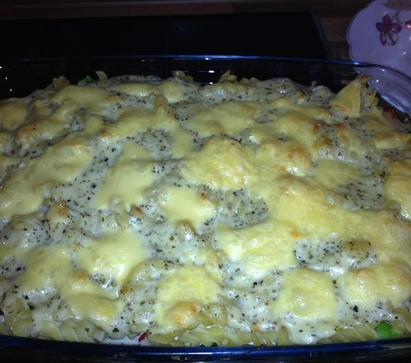 Zapiekankę włożyć do nagrzanego piekarnika i piec około 20, 25 minut w 200 stopniach.Pycha!