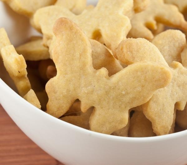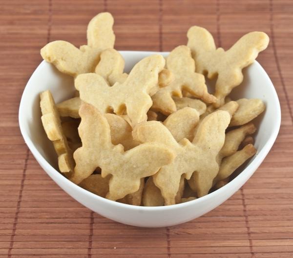 Wykonanie:Mieszamy ze sobą cukier, mąkę, sól, sodę. Dodajemy zimne, posiekane w małe kawałki masło, i rozcieramy z mąką, żeby powstał tłusto-wilgotny piasek. Dodajemy sok i wodę, zagniatamy szybko ciasto. Ciasto zawijamy w folię i wkładamy do lodówki na ok. pół godziny, żeby się schłodziło.Jeżeli mamy robota kuchennego z ostrzami, to polecam zaprząc go do pracy - wtedy po prostu wrzucamy do niego wszystkie składniki i siekamy aż otrzymamy jednolite ciasto. Zazwyczaj ciasto wtedy będzie wystarczająco chłodne, żeby nie musieć go wsadzać do lodówki, w przypadku ręcznego zagniatania ogrzeje się od dłoni, a ciepłe ciasto gorzej utrzyma swój kształt w piekarniku.Schłodzone ciasto wałkujemy na omączonym blacie, najlepiej przez folię - jest dość delikatne i może się bez niej rwać pod wałkiem :) Wałkujemy je na grubość 3-4mm. Foremką wycinamy kształty, które delikatnie przenosimy na blachę wyłożoną papierem do pieczenia.Pieczemy ok. 10 minut w piekarniku nagrzanym do 160 stopni, aż końcówki ciasteczek lekko się przyrumienią, ale nie za bardzo :) mają być złote, ale nie brązowe.Po wyjęciu z piekarnika dajemy im chwilę przestygnąć, po czym delikatnie przenosimy na deskę lub talerzyk do całkowitego przestygnięcia. Ciepłe mogą być jeszcze miękkie i łamać się, więc robimy to z wyczuciem.