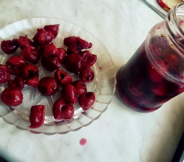 wiśni (jeśli ktoś posiada to jak najbardziej mogą być z własnej spiżarni)