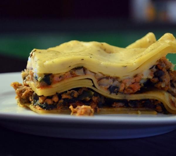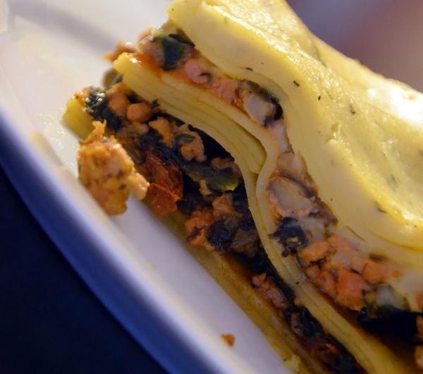 Do farszu będziemy potrzebować:500 g mielonego mięsa z kurczaka500 g pieczarekok. 100 g świeżego szpinakuok. 12 suszonych pomidorów2 ząbki czosnku100 g topionego serka śmietankowego100 g dobrego koncentratu lub przecieru pomidorowego1 łyżka masłaprzyprawy: sól, świeżo mielony czarny pieprz, suszony tymianekDo tymiankowego sosu beszamelowego:4 czubate łyżki masła (ok. 70-80 g)4 czubate łyżki mąkiok. 600 ml mlekaprzyprawy: sól, świeżo mielony czarny pieprz, dużo suszonego tymiankuDodatkowo:makaron typu lazaniatrochę oliwy lub olejuPieczarki kroimy w drobną kostkę i podsmażamy na maśle. Kiedy puszczą sok, dodajemy mielonego kurczaka i całość mieszamy bardzo dokładnie. W garnku powinno wytworzyć się trochę bulionu mięsno-warzywnego do którego dodajemy pokrojony na mniejsze kawałki serek, koncentrat, drobno posiekany czosnek i przyprawy. Czekamy aż serek się rozpuści i sos stanie się jednolity. Pomidory i szpinak kroimy w paseczki. Najpierw dodajemy pomidory, a gdy sos zgęstnieje, wtedy dorzucamy szpinak. Dusimy całość chwilę (ok. 2 min.) i zestawiamy z ognia. Farsz do lazanii powinien być dość gęsty, nie może być wodnisty, ale nie powinien być również zbyt suchy.Przygotowujemy beszamel. Najpierw w rondelku rozpuszczamy masło. Dodajemy do niego mąkę i chwilę smażymy (ok. 2 min.). Następnie cienkim strumyczkiem dodajemy trochę mleka, cały czas mieszając , by nie dopuścić do powstania grudek (najlepiej trzepaczką bądź rózgą). Stopniowo dodajemy ok. szklankę mleka. Przyprawiamy solą i pieprzem. Dodajemy także ok. 2 płaskich łyżeczek tymianku. Całość ciągle energicznie mieszamy, dolewając resztę mleka. Trzymamy na ogniu jeszcze ok. 4-5 min. Sos ma nabrać tymiankowego smaku. Następnie zdejmujemy sos z ognia (gdyby zgęstniał za bardzo, można dodać jeszcze odrobinę mleka) i przecieramy przez drobne sitko. Większość tymianku powinna się na nim zatrzymać. Jeśli tego nie zrobimy, to później sos nie będzie taki kremowy, a poza tym taka ilość suszonego zioła może być denerwująca (i wchodzić w zęby ;). Sos odstawiamy i przykrywamy.W dużym garnku zagotowujemy sporą ilość dobrze osolonej wody z dodatkiem ok. 2 łyżek oliwy/oleju. Płaty lazanii podgotowujemy ok. 2 min. każdy. Jednak nie wrzucam wszystkich, które zamierzamy użyć na raz do garnka. Wtedy na pewno się posklejają. Gotujemy ok. 4-5 płatów makaronu na raz, a po wyjęciu z wody rozkładamy tak, by się nie posklejały.Prostokątne naczynie żaroodporne delikatnie natłuszczamy i wykładamy pierwszą warstwę makaronu. Na nim układamy połowę farszu, który cieniutko smarujemy sosem beszamelowym. Następnie znów makaron, farsz i cienka warstwa beszamelu. Na koniec całość przykrywamy jeszcze jedną warstwą makaronu i polewamy pozostałym sosem beszamelowym. Wierzch możemy również posypać tartym żółtym serem, ale ja tego nie zrobiłam, a efekt i tak był wspaniały.Lazanię pieczemy 30-35 min. w 180 stopniach Celsjusza. Podajemy od razu. Muszę Wam jednak zdradzić, że taka lazania dość dobrze się przechowuje. Jeśli trochę Wam zostanie, to ostudzoną spokojnie możecie przykryć, schować do lodówki i odgrzać następnego dnia, nawet w mikrofali ;)Ten przepis to taka moja alternatywa dla klasycznej lazanii. Jeśli lubicie to danie w jego tradycyjnej wersji, a do tego lubicie eksperymentować, to serdecznie polecam moją propozycję. Jest naprawdę świetna. Kremowa i dość delikatna, ale zarazem intensywna w smaku. Pycha :DSmacznego!