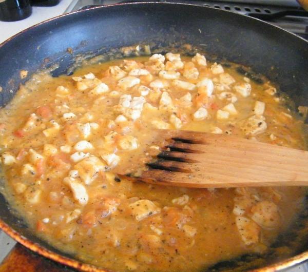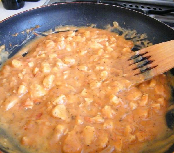 wodą, dodajemy kremówkę i zagęszczamy. Farsz ma wyjść bardzo gęsty - inaczej rozleje się podczas pieczenia pasztecików. Po zagęszczeniu skontrolujcie smak. Zagęszczania można uniknąć przez obtoczenie
