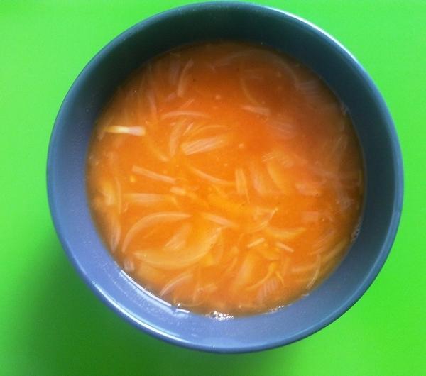 200g czerwonej soczewicy1 duży czerwony ziemniak2 cebule2 ząbki czosnkukostka rosołowasól, pieprz cayenne, papryka słodka, curry, cukier, koncentrat pomidorowyCebulę kroimy w piórka, czosnek w kosteczkę, zalewamy odrobiną wody dusimy. Ziemniaka obieramy kroimy w drobna kostkę. Soczewicę musimy najpierw opłukać. gdy cebula już zmięknie, dodajemy ziemniaka i soczewicę, zalewamy wrzątkiem, do pełna :) Dodajemy kostkę rosołową (ja używam kostek bez soli), łyżkę soli, i dwie łyżki koncentratu pomidorowego. Gotujemy około 20 minut na wolnym ogniu. Na sam koniec przyprawiamy odrobiną pieprzu cayenne i curry. Dodajemy pół łyżeczki słodkiej papryki i tyle samo cukru. Gotujemy jeszcze 5 minut.