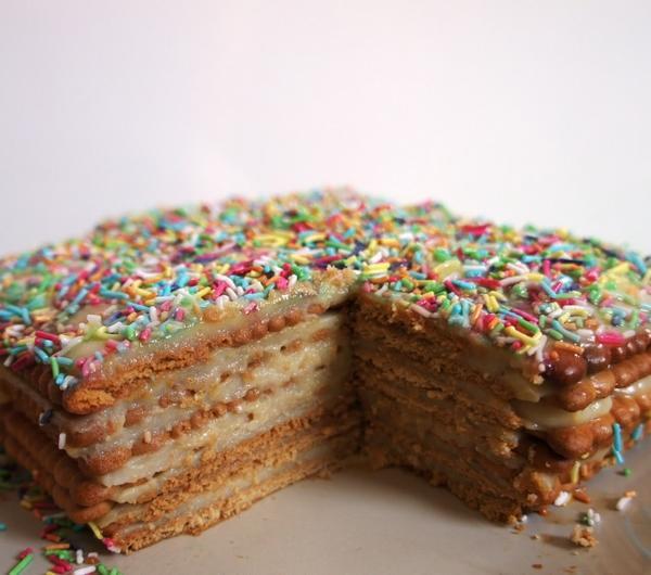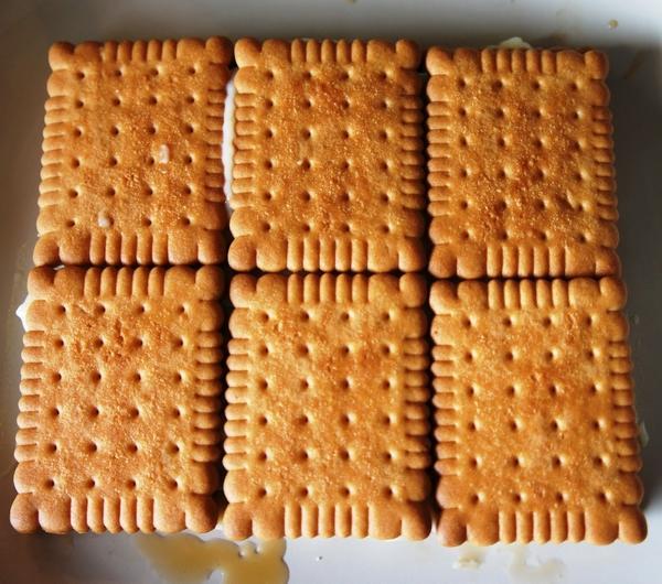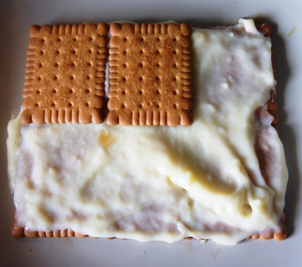 herbatników. Na samej górze powinna się znaleźć warstwa budyniu, która dekorujemy. Całość wkładamy na 2-3 godziny do lodówki.