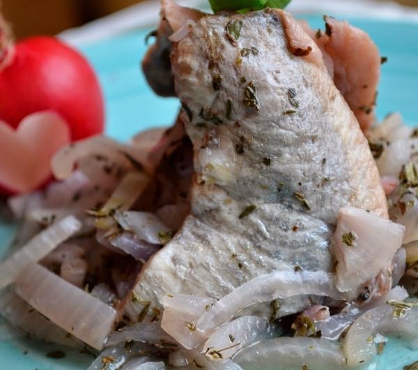 SKŁADNIKI500 g śledzi2 cebule (biała i czerwona)130 ml wody3 łyżki octu winnego3 łyżeczki cukrukilka ziaren ziela angielskiego3-4 listki laurowe1-2 łyżki tymianku1-2 łyżki bazyliiJAK TO ZROBIĆŚledzie moczymy ok. 3 godzin lub całą noc.Wodę doprowadzamy do wrzątku, dodajemy ocet, ziele angielskie, liście laurowe, cukier i pokrojoną w kostkę cebulę. Wszystko mieszamy i gotujemy przez 2-3 minuty. Studzimy.Śledzie odsączamy, kroimy w większe kawałki.W większym naczyniu układamy warstwami: śledzie, cebulę z zalewy i posypujemy przyprawami (zwykle w litrowym słoiku wychodzi po 5 warstw). Na koniec wszystko zalewamy zalewą i zasypujemy bazylią i tymiankiem. Ostawiamy w chłodne miejsce przynajmniej na 2 dni.Smacznego!