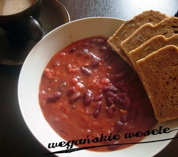 Z czerwonej fasoli usuwamy zalewę wrzucamy do garnka razem z całą zawartością puszki z pomidorami i gotujemy na małym ogniu. Dość długo, aż pomidory się rozpadną. Dodajemy majeranku i typowo angielskiego dodatku jakim jest ocet. Z tym radzę ostrożnie, bo geografia smaków to nie mit. Do tego żeby poczuć angielski klimat obowiązkowo herbata, ale jak ktoś ogląda westerny to wie, że prawdziwi mężczyźni piją do tego kawę :)