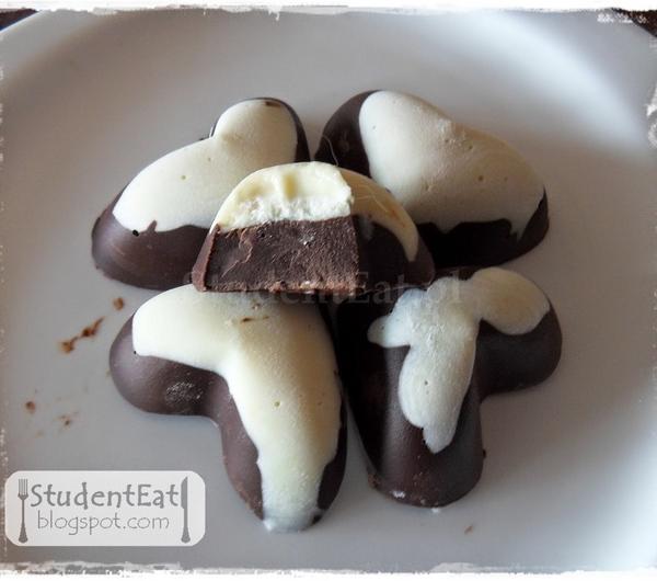 czekoladki wkładam do lodówki, aż zrobią się twarde.Gotowe wyciągam z formy i podaję.Smacznego!