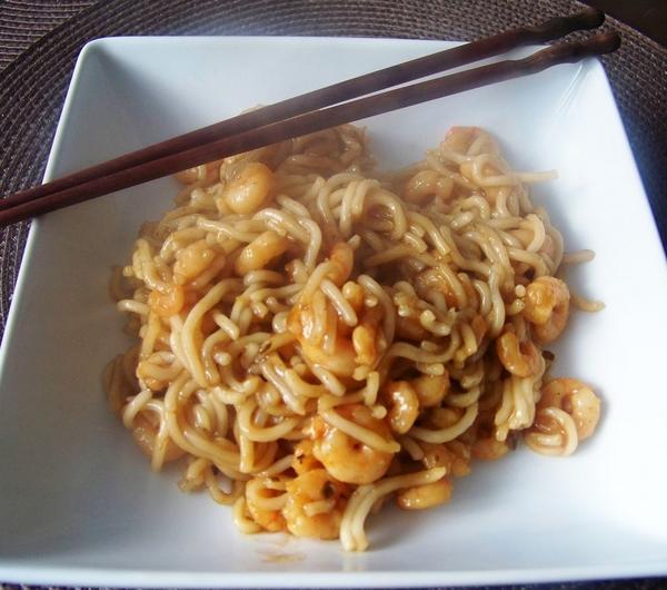 makaron chiński - ja kupiłam hermetycznie pakowany, obgotowany, wystarczy go lekko podgrzać. Na końcu dodajemy dwa opakowania sosu
