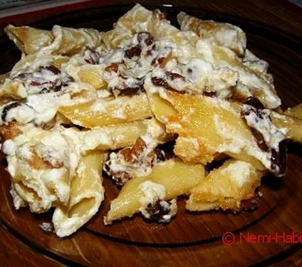 Makaron gotujemy, odcedzamy i mieszamy z 3 łyżkami