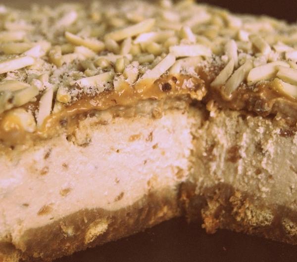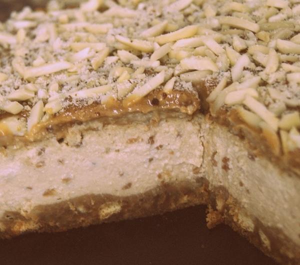 łopatką lub palcamiprzełóż do tortownicy i ugniećMASAskładniki wyłóż do miski i wymieszaj mikseremprzełóż na spód (tak, nieprzypieczony)piecz w 170 stopniach ok półtorej godziny (zrobiłam jak w oryginale- położyłam naczynie żaroodporne z