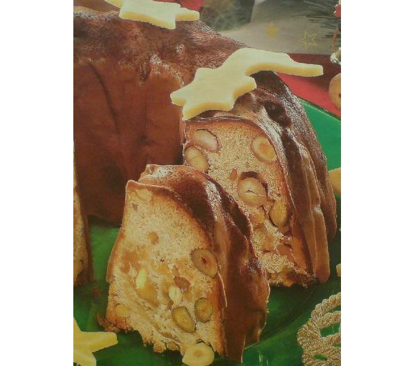 Dodaj przepis do ulubionych!(ilość porcji): 20(z pieczeniem / smażeniem): 100 minut(stopień trudności):Oceń przepisMożesz ocenić ten przepis nie rejestrując się u nas!Średnia ocena użytkowników : 0Ilość ocen : 0SkładnikLogo Ilość Czegomąka 500 gramówdrożdże 500 gramówskórka z cytryny - otarta 1 sztuksól 1 szczyptajajka 2 sztukcukier waniliowy 1 sztukcukier 125 gramówmargaryna 150 gramówmleko 150 mililitrówmarcepan 200 gramóworzechy włoskie 100 gramóworzechy laskowe 200 gramóworzechy nerkowca 100 gramówcukier puder 50 gramówmasło orzechowe 100 gramówkakao według uznaniaWykonanie:Przesianą mąkę wymieszać z cukrem, solą, skórką cytrynową, cukrem waniliowym, stopiona margaryną oraz jajkiem. Drożdże rozpuścić w ciepłym mleku i wlać do mąki. Wyrobić gładkie ciasto i pozostawić w cieple do wyrośnięcia.125g marcepanu pokroić w kostkę. Orzechy włoskie posiekać. Marcepan i wszystkie orzechy dodać do wyrośniętego ciasta i zagnieść. Z ciasta uformować wałek i umieścić go w wysmarowanej tłuszczem i obsypanej mąką dużej formie do babek. Zostawić do wyrośnięcia. Piec ok. 40 minut w 190 stopniach, wystudzić.Cukier puder zagnieść z 75g masy marcepanowej, rozwałkować i wyciąć gwiazdki.Ciasto posmarować masłem orzechowym, obficie posypać kakao i udekorować gwiazdkami marcepanowymi.Autor: BeciaZobacz inne przepisy użykownika!Ciasta i DeseryKuchnia PolskaWigiliaDodaj komentarz:Jeśli chcesz dodać link do tego przepisu na swoją stronę, to wystarczy, że skopiujesz kod poniżej z pola tekstowego i wkleisz go na swoją stronę czy bloga: