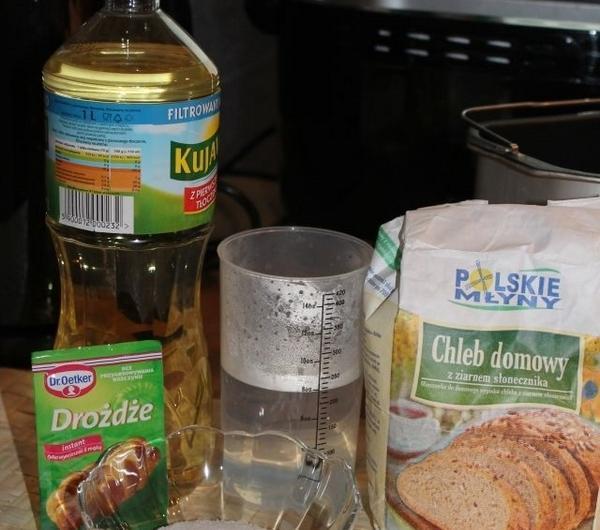 cukrudrożdże suszon e 7 g230 ml ciepłej w ody1 łyżeczka s oli(jeżeli korzystamy z gotowej mieszan ki, nie dodajemy
