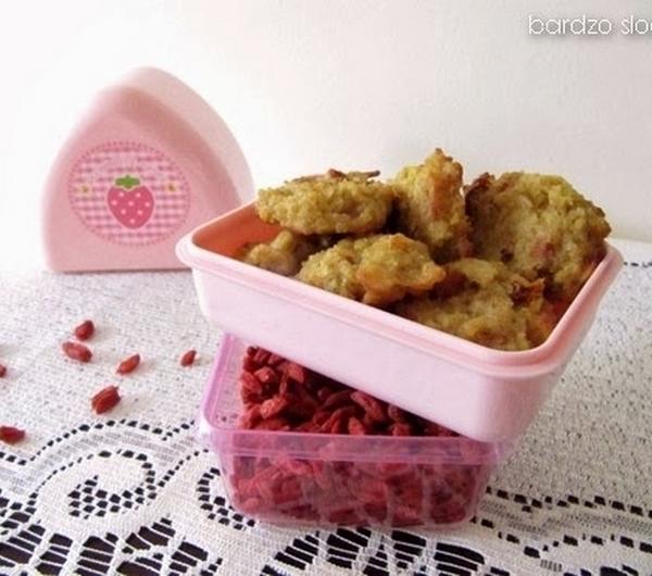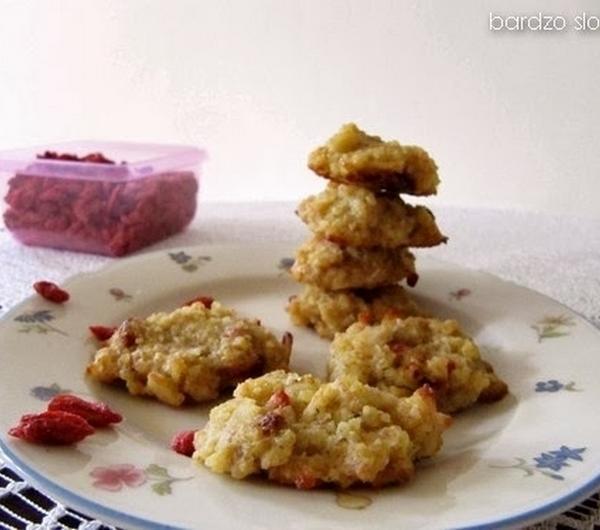 Lodówka lubi być pusta, kiedy wraca się do domu po wakacjach. Na szczęście przywiozłam ze sobą najlepszą babkę cioci, kilka pączków i chleb z ulubionej sopockiej piekarni. Potem wyjęłam kaszę manną z pudełka i słoik zeszłorocznych powideł z szafki. Dzięki temu kolacja po całym dniu męczącej podróży była całkiem smaczna. Następnego dnia wyruszyłam już na zakupy, a wieczorem z piekarnika wyjęłam bardzo nietypowe i przede wszystkim zdrowe ciasteczka. Jutro zaczynam drugi rok studiów, więc na drugie śniadanie będą jak znalazł! Idealne do podjadania w natłoku zajęć, bo już czuję, że moja doba zdecydowanie powinna mieć więcej niż 24 godziny :)Przepis pochodzi z 5 numeru Kukbuka (wrzesień- październik), podaję tak jak ja zrobiłam★ Jaglane ciasteczka z jagodami goji ★Składniki:1,5 szkl. ugotowanej kaszy jaglanej50g miękkiego masła4 łyżki syropu z agawy1 jajko1/3 szkl. mąki pszennej pełnoziarnistej1/2 łyżeczki proszku do pieczenia3 łyżki jagód gojigarść płatków migdałowychKaszę wymieszać z masłem, syropem z agawy i jajkiem. Wsypać mąkę, proszek i na końcu jagody z migdałami. Całość dokładnie wymieszać i wstawić do lodówki na godzinę żeby masa stężała. Na blaszce wyłożonej papierem do pieczenia układać łyżeczką okrągłe ciasteczka.Piec przez około 15 minut w piekarniku nagrzanym do 175 stopni.