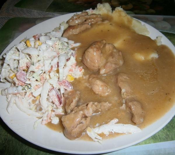 wodą6) Przyprawiamy do smakuIII SurówkaTu akurat wielkiej filozofii nie ma. Kroimy wszystkie warzywa na drobne kawałki i mieszamy z pozostałymi składnikami :-)==========================================================================Tak przyrządzone danie może być świetnym zwieńczeniem długiego dnia w pracy lub na uczelni. Polecam :-)