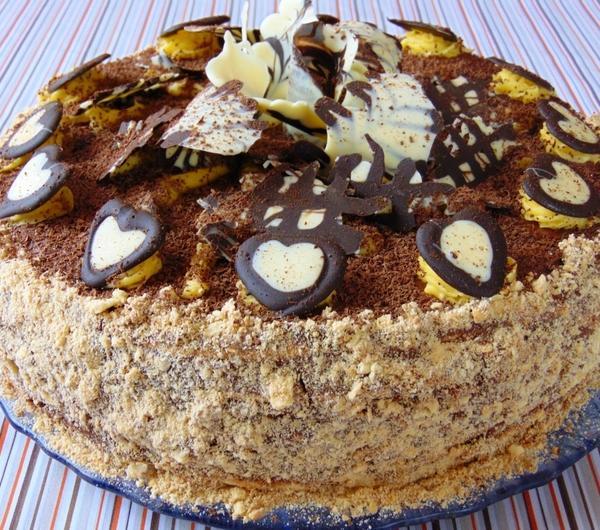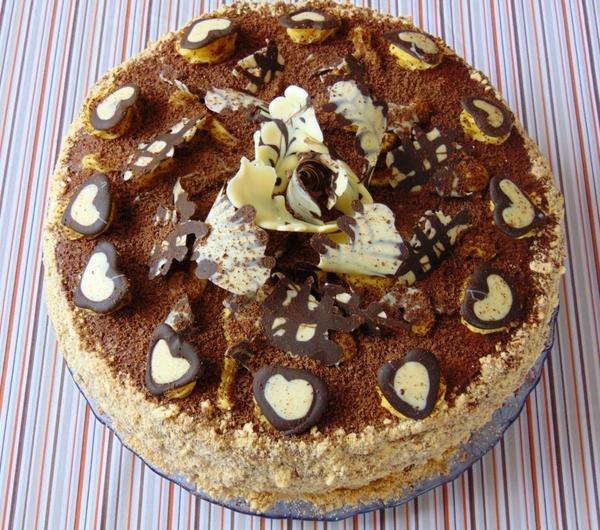 tortu. Brzegi posypać upieczonymi i pokruszonymi okrawkami ciasta. Wierzch posypujemy startą