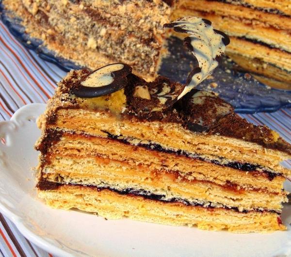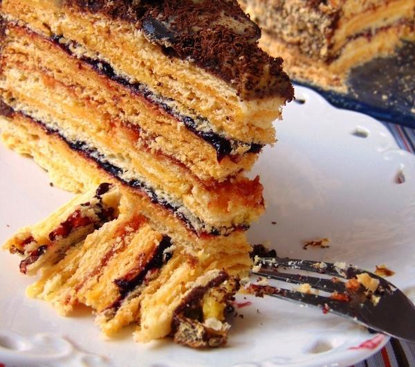 dżemu porzeczkowego, na to znów dwie warstwy kremu i
