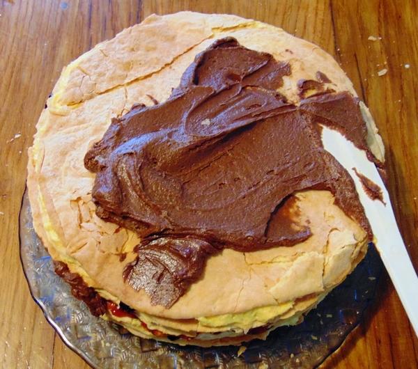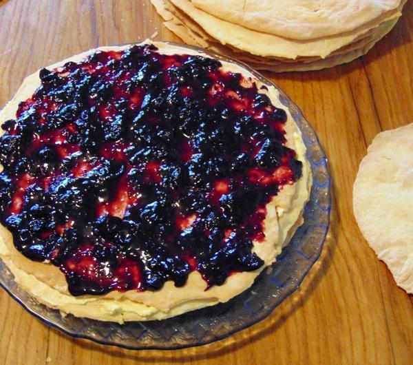 dżem porzeczkowy i ostatnie dwie warstwy masy.