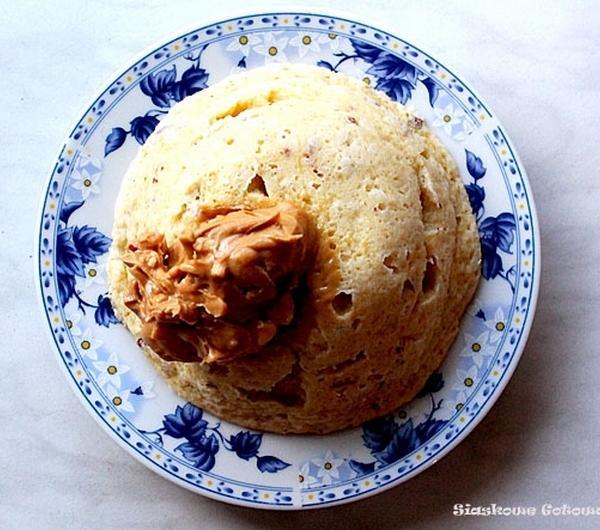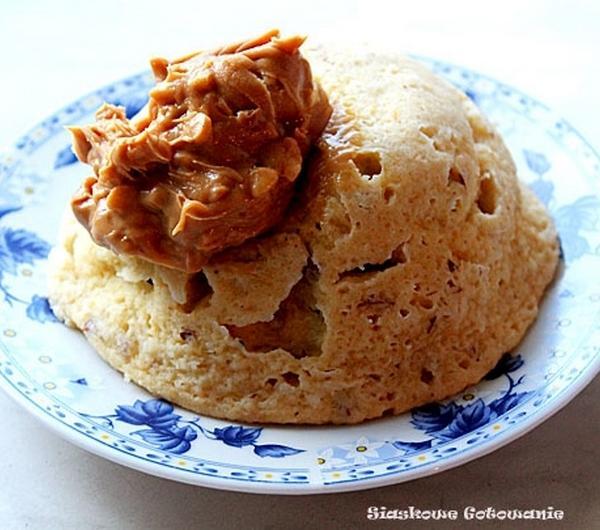 1 jajko20g kaszy manny20g migdałów100g puree dyniowego1 łyżeczka stewi1 łyżeczka oleju kokosowegoŻółtko utrzeć za stewią, dodać olej kokosowy, kaszę mannę, posiekane migdały i delikatnie wymieszać. Białko ubić i drewnianą szpatułką wymieszać z resztą składników.Przełożyć do żaroodpornej miseczki i pies 15min w 170stopniach w nagrzanym piekarniku.