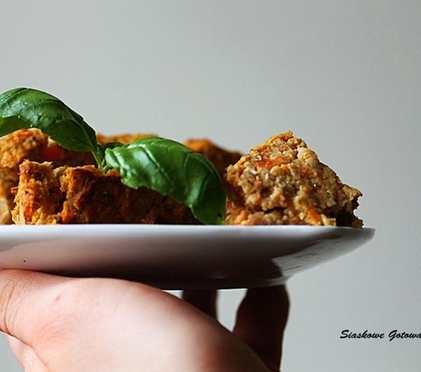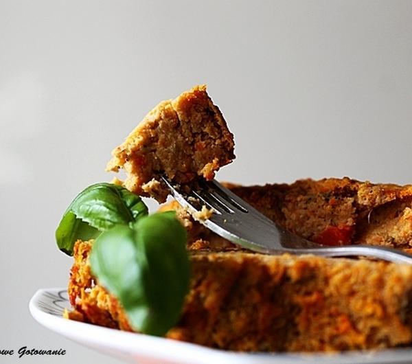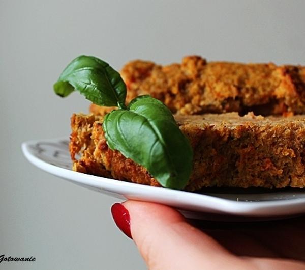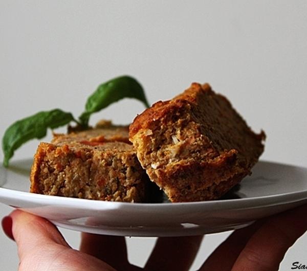 3/4 szkl soczewicy czerwonej150g mięsa mielonego3 duże marchewki1/3 szkl otrębów owsianych1 jajko1 cebula4 łyżki oliwy3 łyżki pestek dynii1 łyżeczka słodkiej papryki1/2 łyżeczki wędzonej papryki1/2 łyżeczki majerankupieprz/sólSoczewicę ugotować i ostudzić. Marchewkę obrać i ugotować. Na łyżce oliwy podsmażyć cebulę.Wszystkie składniki połączyć i zmiksować blenderem na gładką masę.Piec 50min w 180stopniach.
