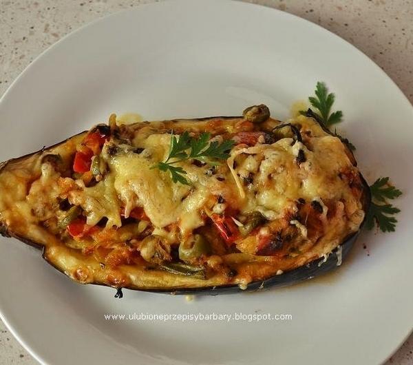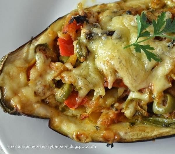 bakłażan faszerowany warzywami. Inspiracją były różne przepisy, ale w ostateczności warunki podyktowała (poniekąd) moja lodówka i to co w niej znalazłam:-) Oczywiście wiedziałam, że chcę coś z