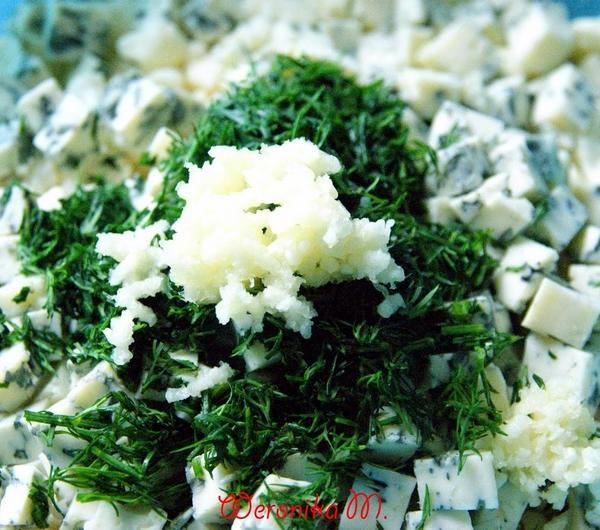 Składniki:3 łyżki posiekanego koperku2 łyżki majonezu1 duża główka kalafiora2 sery lazur błękitne3 ząbki czosnkusól i pieprz do smakuPrzygotowanie:Główkę kalafiora dokładnie myjemy i pozbywamy się liści, następnie małym nożykiem odkrawamy zewnętrzną warstwę korony do miski, tak aby nie było korzeni a kawałeczki kalafiora były drobne, co widać na załączonych zdjęciach. Sery lazur kroimy w kosteczkę i dodajemy do kalafiora razem z koperkiem. Czosnek dokładnie wyciskamy do miski i mieszamy wszystkie składniki, na koniec dodajemy majonez i jeszcze raz wszystko dokładnie mieszamy, możemy dodać pieprz i sól do smaku.