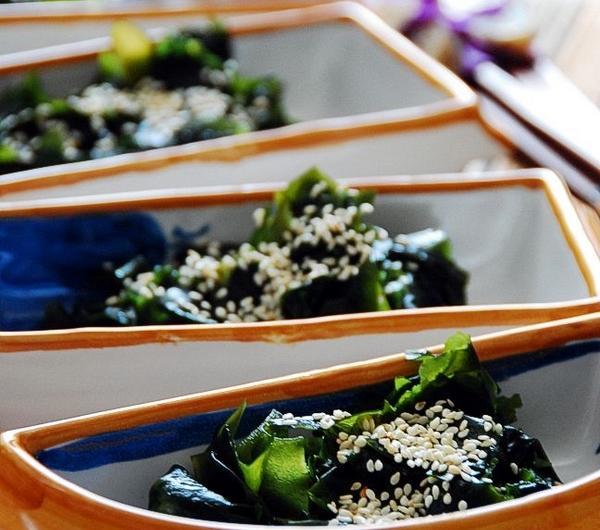 czas przygotowania: 15 minutCzego potrzebujesz?opakowanie suszonych glonów wakameparę łyżek sezamu7 łyżek octu ryżowego3-4 łyżki cukruszczypta soliCo teraz?1. Przygotuj wodorosty wg. przepisu na opakowaniu, tj. zalej je gorącą wodą i odstaw na parę minut, aż zaczną uciekać z miski.2. Upraż sezam na suchej patelni.3. Zagotuj ocet, cukier i sól.4. Odcedź resztki wody z glonów, polej je sosem i posyp prażonym sezamem.***Japanese wakame saladpreparation time: 15 minutesWhat do you need ?package dried wakame algaea few tablespoons of sesame7 tablespoons rice vinegar3-4 tablespoons of sugarpinch of saltWhat now?1 Prepare seaweed according to the instructions from the package, it means: pour them with hot water and let stand for a few minutes until they start to run away from the bowl.2 Roast the sesame seeds in a dry frying pan .3 Boil the vinegar, sugar and salt.4 Drain any remaining water from algae, pour over them the sauce and sprinkle with toasted sesame seeds.