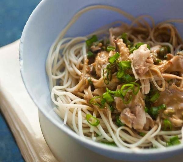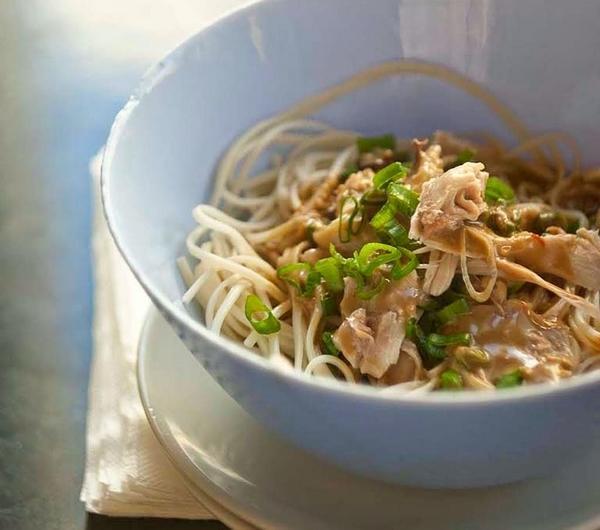 Fuchsia Dunlop spędziła w Chinach sporo czasu, zbierając przepisy od znanych, miejscowych kucharzy. Noodle z kremowym sosem tahini są jednym z moich ulubionych. Są jedną z popularnych ulicznych przekąsek w Syczuanie. Zwykle podaje się je na zimno, ale mnie smakują także na ciepło. To dobry pomysł na wykorzystanie resztek z kurczaka.***Fuchsia Dunlop spent some time in China, collecting recipes from famous, local chefs. A popular, Sichuanese street food are egg noodles with creamy tahini sauce, they are one of my favorite recipes. Served cold, however I like them warm as well. It's a great dish to utilize your chicken leftovers.Składniki na 4 osoby250 g noodli1 1/2 łyżki oleju sezamowego lub z orzechów ziemnychgarść kiełków (opcjonalnie)resztki kurczaka (ja użyłam mięsa obranego z dwóch ugotowanych udek)2 cebule dymki, drobno posiekaneSos (w razie konieczności podwój proporcje, ja przygotowałam swój z potrójnych, tylko dlatego, że ten sos jest tak dobry)2 łyżki tahini + 1 łyżka wody1 1/2 łyżki ciemnego sosu sojowego1/2 łyżki jasnego sosu sojowego1 łyżka octu balsamicznego1/2 łyżki octu ryżowego1 łyżka cukru1 ząbek czosnku, zmiażdżony1/2 łyżeczki pieprzu syczuańskiego (opcjonalnie)2-3 łyżki oliwyszczypta chilli1 łyżka oleju sezamowego1. Przygotuj noodle wg. przepisu na opakowaniu.2. Po odcedzeniu skrop olejem sezamowym. Wystudź.3. Na dnie miski ułóż kiełki, następnie noodle, polej sosem, a na wierzchu ułóż kawałki kurczaka i dymkę. Jakkolwiek ja zwyczajnie wymieszałam wszystkie składnki i polałam sosem tuż przed podaniem. Palce lizać!Spicy noodles with chicken sliversserves 4 people250 g egg noodles1 1/2 tablespoons of sesame oil or peanut oila handful of sprouts (optional)chicken leftovers (I've used meat of two boiled chicken thihgs)2 spring onions, finely choppedSauce (if necessary double proportions, I tripled mine, just because this sauce is so good!)2 tablespoons tahini + 1 tablespoon water1 1/2 tablespoons dark soy sauce1/2 tablespoons light soy sauce1 tablespoon balsamic vinegar1/2 tablespoons rice vinegar1 tablespoon sugar1 clove of garlic, crushed1/2 teaspoon Sichuan pepper (optional)2-3 tablespoons of olive oilpinch of chilli1 tablespoon of sesame oil1. Prepare noodles per instructions on the package2. Rinse and sprinkle with sesame oil. Let it cool down.3. While serving: place sprouts at the bottom of your plate, then noodle, pour sauce, top with chicken and spring onions. However, I just mixed everything, adding sauce at the very end. Still delicious!
