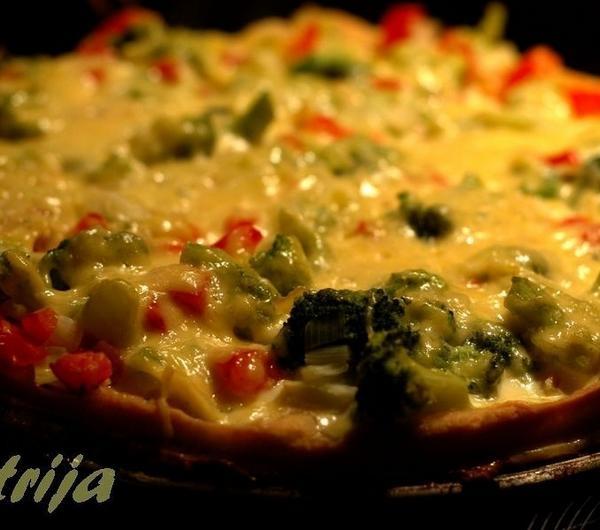 Tym razem tarta z brokułami i porem. Bardzo smakowite danie, zaczerpnięte od chochlików kuchennych. Z moimi lekimi modyfikacjami:- ciasto po mojemu- mniej wypełnienia mleczno-jajecznego. w orginale są w nadzieniu 4 jajka i 300ml chudego mleka. Ja nie przepadam za tym wypełnieniem i wolę w tarcie mieć więcej warzyw niż tej mleczno-jajecznej masy.Zaczynamy od ciasta:- 20 dag masła/margaryny- 30 dag mąki- 1 jajko 1 żółtko- 1/2 łyżeczki soli- szczypta imbiruWszystko razem szybko zagniatamy na stolnicy i wkładamy do lodówki (ideał godzina, a praktyka pokazuje, że i kwadrans jest w porządku.. )Trzeba się zastanowić, co teraz. Czy przygotowywać farsz, czy sprzątać kuchnię;) Gdyż ciastu należy się najpierw jakieś 10-15 min pieczenia w piekarniku bez masy.Masa:- 1/2 pora w plastrach- ok 20 dag brokułu, w małych różyczkach- 1 papryka czerwona pokrojona w małe kawałeczki- 2 jajka- 100 ml mleka- 1/2 łyżeczki soli- 2 szczypty pieprzu- 2 szczypty gałki muszkatołowej- 10 dag startego żółtego seraI teraz tak. Por, brokuły i paprykę zblanszować (jeśli dobrze używam słów- chodzi o to by je wrzucić do wrzątku i jakieś 2 minuty gotować).Jajka ubić z mlekiem, doprawić solą, pieprzem, gałką.I tyle. Wracamy do ciasta. Zakładam, ze już się podpiekło troszkę.Wyjmujemy, układamy na nim warzywa, posypujemy serem i zalewamy jajkiem z mlekiem. Koniec roboty. Teraz wstawiamy do piekarnika na ok 220st na ok 25 min. (Chodzi o to by masa jajeczna się ścięła i podpiekła ładnie).