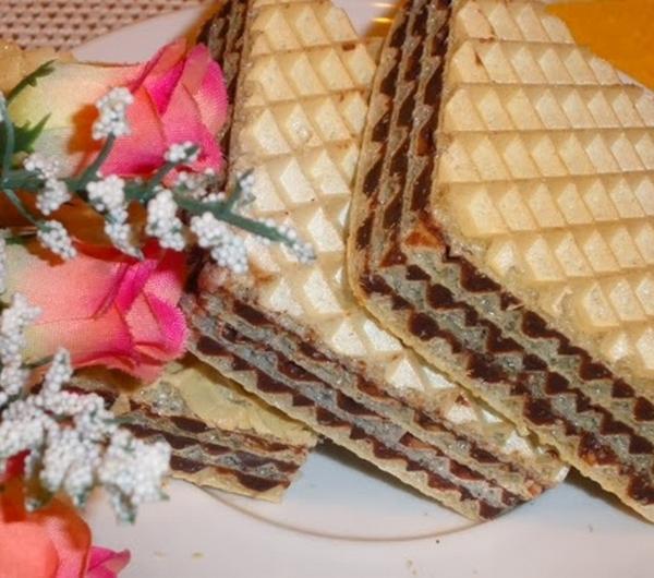 Składniki:opakowanie wafli (mogą być okrągłe lub prostokątne)3 jajka1 ½ szklanki cukru1 kostka masła3 łyżki kakaoPrzygotowanie:Jajka i cukier łączymy ze sobą w misce umieszczonej nad kąpielą wodną. Podgrzewamy całość ok. 5 min. (nie gotujemy!), ale tak by jajka się nie ścięły. Musimy uważać z płomieniem i podgrzewać z wyczuciem, cały czas mieszając. Następnie dodajemy masło i kakao, podgrzewamy i mieszamy ok. 10 minut. Masa powinna się lekko spienić.Po upływie 10 minut zdejmujemy masę z ognia. Chwilkę czekamy aż ostygnie. Następnie na blacie rozkładamy andruty i smarujemy je ciepłą masą. Gdy przełożymy wszystkie wafle, odkładamy nasz blok andrutowy w chłodne miejsce, aby masa stężała i dobrze związała całość. Pozostaje krojenie deseru a potem degustacja pysznych wafelków.Smacznego!