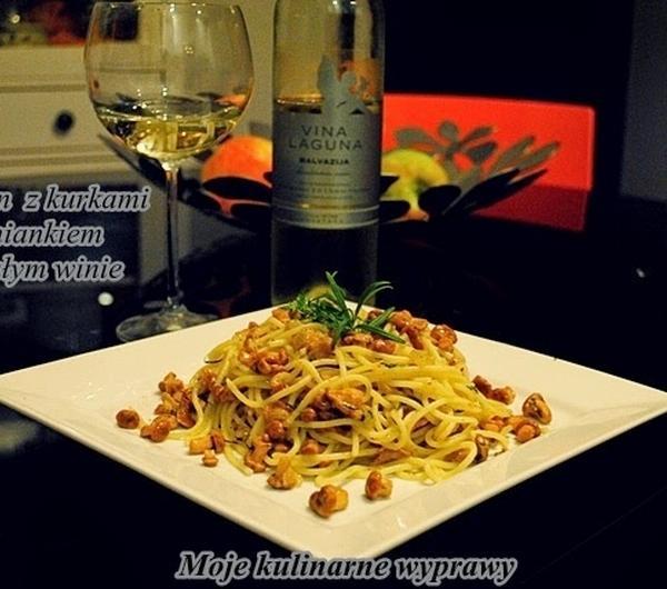 wytrawnego białego wina,czekamy aż odparuję,wtedy dodajemy 2 łyżki