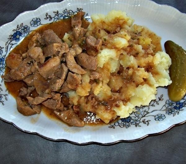 Wieprzowinę kroimy na kawałeczki (w poprzek włókien) po czym polewamy ją
