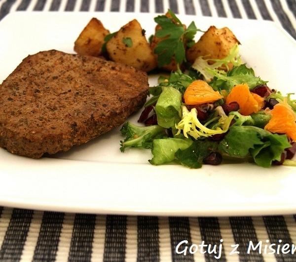 Składniki:4 plastry ligawy wołowej grubości około 2 cmmarynata: pieprz kolorowy mielony, bazylia, majeranek, miks przypraw do steków, 5 łyżek oleju, 5 łyżek sosu sojowegoSteki nacieramy przyprawami, dodajemy olej i sos sojowy i odstawiamy na co najmniej 2 godziny. Wyjmujemy steki z marynaty, wrzucamy je na rozgrzaną patelnię grillową i podsmażamy po 2 minuty z każdej strony. Steki grillujemy, a nie smażymy – nie trzeba dodawać oleju do smażenia. Jeśli lubisz krwiste steki, to są już gotowe. Jeśli mają być bardziej wysmażone, to zdejmujemy je z patelni i wkładamy do rozgrzanego do temperatury 200 º piekarnika. Po około 4 minutach steki będą średnio wysmażone (medium), dalsze trzymanie ich w piekarniku jest zarezerwowane dla wielbicieli zwęglonego mięsa (well done). Przekładamy je na talerz, żeby trochę odpoczęły i puściły soki. Najlepiej smakują z pieczonymi ziemniakami i surówką.
