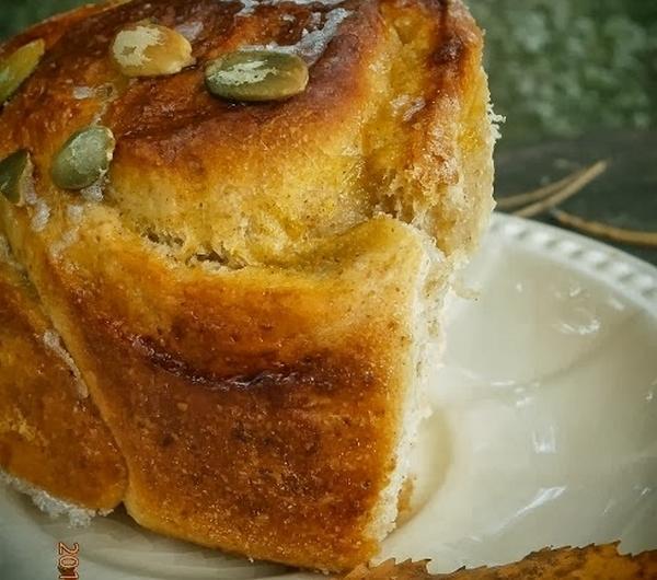 Drożdże kruszymy w miseczce, dodajemu ciepłe mleko, łyżkę mąki i łyżkę cukru. Mieszamy i odstawiamy pod przykryciem do wyrośnięcia, około 15 min.Jajka roztrzepać widelce i odlać małą ilość na później tylko do posmarowania drożdżówek przed upieczeniem. Resztę masy jajecznej wymieszać z pozostałym mlekiem, puree dyniowym, cukrem oraz olejem i dokładnie wymieszać.Oba rodzaje mąki przesiewamy do miski i dodajemy cynamon oraz sól. Robimy w mące na środku dołek i wlewamy do niego gotowy zaczyn oraz mokre składniki. Całość mieszamy widelcem, a następnie wykładamy na posypany mąką blat i dokładnie zagniatamy. Jeśli ciasto będzie za lepkie podsypujemy je mąką, ale nie za dużo !Gotową kulę przekładamy do miski, przykrywamy ściereczką i odstawiamy w ciepłe miejsce do wyrośnięcia. Ciasto będzie gotowe kiedy podwoi swoją objętość.Nadzienie bułeczek:3 łyżki puree dyniowego1 łyżka mąki pszennejcynamom wdg uznaniaWszystkie składniki nadzienie mieszamy do połączenia składników.