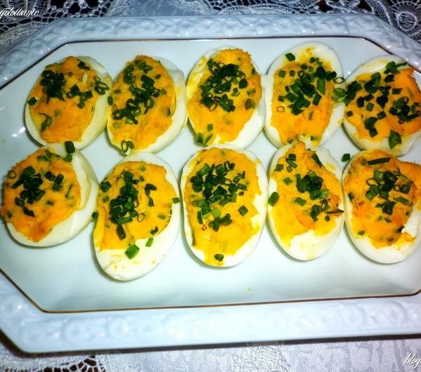 Autor: Halina JoskowskaOpublikowano: 7 czerwca 2013 r.Jestem amatorem jajek pod każdą postacią, może dlatego, że świat powstał z jaja? :-)Może dlatego, że jest symbolem życia, najlepszym źródłem białka w diecie?Jajka są bardzo cenione jako posiłek, już starożytni Rzymianie zaczynali każdą ucztę od jajek, a do naszych czasów zachowała się łacińska sentencja: " ab ovo usque ad mala, czyli od jajka, aż do jabłek. Metaforycznie oznacza to " od początku do końca ".Jaja są bardzo bogate we wszelkie potrzebne nam minerały i witaminy.Dostarczają białka o najwyższej wartości biologicznej spośród wszystkich zjadanych przez nas produktów. Przygotowanie tej potrawy jest bardzo proste i nie jest czasochłonne.Ugotowane i przepołowione białka wypełniam farszem przygotowanym z żółtek,wędzonej szynki i szczypiorku. Wszystko doprawiam solą i pieprzem, na koniec połówki dekoruję wyhodowanym w moim warzywniaku szczypiorkiem :-)Danie jest smaczne i godne polecenia :-)Jajka faszerowane Autor opinii: Halina Joskowska, data przesłania: 5 czerwca .Niektórych jaja straszą groźnym cholesterolem. Jeszcze kilka lat temu zalecenia żywieniowe ograniczały spożywanie jajek do 2-3 tygodniowo, bo zjedzenie większej ilości ponoć przyczyniało się do podwyższenia poziomu cholesterolu w organizmie. Ostatnio wyczytałam, że Amerykańscy uczeni przeprowadzili badania na około 40 tysiącach mężczyzn w wieku 40-75 lat i 80 tysiącach kobiet w wieku 34-59 lat, nie obciążonych żadnymi ciężkimi schorzeniami typu: cukrzyca, nowotwory, choroby układu krążenia.Dowiedziono, że osoby względnie zdrowe zjadające jedno jajko dziennie nie są szczególnie zagrożone chorobą naczyń wieńcowych.W ten sposób zanegowano dotychczasową opinię, że zjadanie jaj przyczynia się do rozwoju miażdżycy i chorób serca. Jedynie mała ilość cholesterolu zawartego w pokarmie przenika bezpośrednio do krwi. Ilość cholesterolu w pokarmie w niewielkim stopniu wpływa na jego stężenie we krwi, ponieważ większość jest produkowana przez wątrobę i stąd przedostaje się do krwiobiegu.Tak więc jajka możemy spożywać bez obaw, ponieważ nie są już uważane za główne źródło cholesterolu:-) Według Światowej Organizacji Zdrowia około 10 jaj tygodniowo nie jest w stanie zaszkodzić zdrowiu :-)Oceny: 4 , 5Czas przygotowania: 20 minCzas gotowania: 10 minŁączny czas: 30 minLiczba porcji: 5 porcjiRozmiar porcji: 1 jajko (80 g)Liczba kilokalorii w porcji: 219Białko na porcję: 8,0 gWęglowodany na porcję: 1 , 0 gSkładniki:j ajka wiejskie od gospodyni : 5szynka wędzona : 50 gmajonez : 2 łyżkiszczypiorek : kilka gałązeksól morska : do smakuświeżo zmielony pieprz : do smakuPrzygotowanie:Jajka gotuję na twardo - 10 minut.Studzę, obieram ze skorupek i kroję wzdłuż na pół.Delikatnie wyjmuję żółtka.Żółtka mieszam z pokrojoną w kosteczkę szynką i posiekanym szczypiorkiem.Dodaję majonez, ostatnio zasmakował mi majonez Kielecki, jeśli ktoś się odchudza to polecam majonez w wersji Light.Przyprawiam solą i pieprzem do smaku.Napełniam masą połówki jaj.Podaję na półmisku.