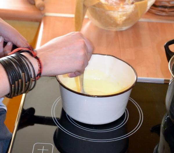 masło. Wyrobić elastyczne ciasto, przykryć ściereczką i odstawić w ciepłe miejsce na 1h.Ugotować