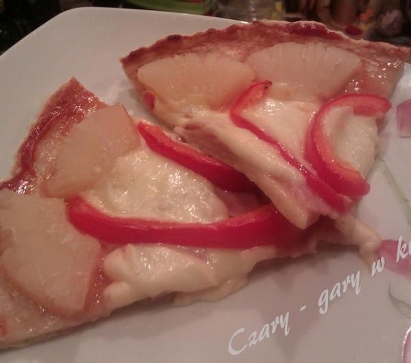 Dokonałam dziś "odkrycia" ;-) Okazuje się, że tuż obok mojej pracy znajduje się fantastyczny sklep z pieczywem :-) Przyznam, że miałam spory problem, żeby zdecydować się tylko na niektóre specjały, a wybór tam jest niesamowity! Na słodko, na słono, na pikantnie... do wyboru, do koloru... a zapach... mmm... A najlepsze w tym wszystkim jest to, że ja to miejsce mijam codziennie, nawet dwukrotnie, tylko że z perspektywy samochodu przemykającego ulicą jest ono prawie niezauważalne... Kupiłam pewnie jak zwykle trochę za dużo, a teraz opycham się nieziemskim wprost chlebem żytnim z orzechami i suszonymi śliwkami... i czekam na opinię mojego męża, na temat tych moich zakupów ;-)A póki co w natarciu pizza - tak trochę inna, bo sezamowa :-) w czasach studenckich często zamawialiśmy pizzę na sezamowym spodzie, ale tamta była na cieście drożdżowym. Moja jest bez drożdży, przez co jest jeszcze bardziej wyjątkowa w smaku :-) no i robi się ją szybciej, bo nie musi wyrastać ;-) Spróbujcie, myślę że warto :-)SKŁADNIKINa podpłomyk:1 szklanka mąki pszennej1/3 szklanki wodyszczypta soli2 łyżki sezamu1 łyżka oleju (najlepiej z prażonych orzechów włoskich - idealnie komponuje się z sezamem)Dodatkowo:3 plastry ananasa z puszki1/4 papryki czerwonej4 plastry szynki120 g mozzarelli2 łyżki ketchupuMąkę mieszamy z solą i sezamem, dolewamy wodę i zagniatamy ciasto, a następnie wykładamy nim dno formy do pizzy (posypcie je obficie mąką, inaczej pizza przyklei się :-( ) i pieczemy przez 8 minut w piekarniku nagrzanym do 180 stopni.