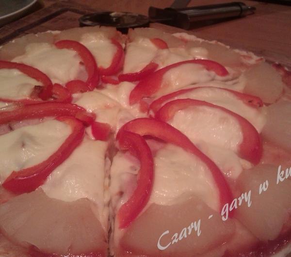 P.S.To jest proporcja na małą pizzę, ja piekłam w blaszce o średnicy 25 cm.