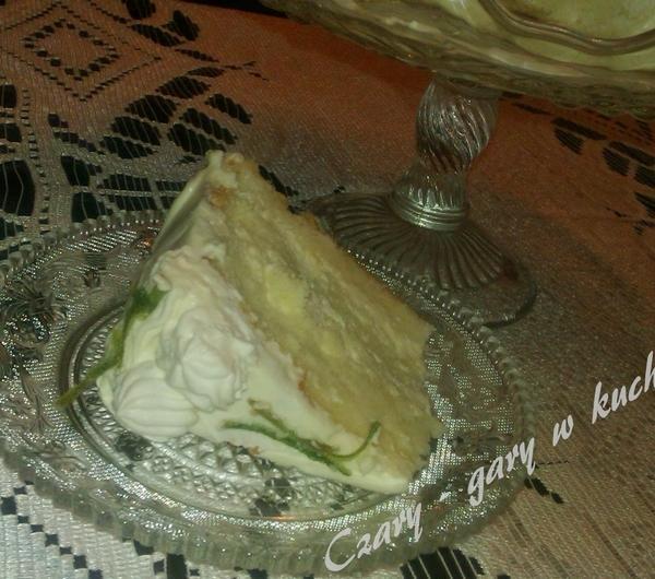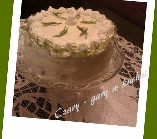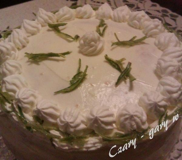 No i dopadła mnie zima na całego! Od wczoraj walczę z jakimś potwornym przeziębieniem :-( ale wygląda na to, że dobrze mi idzie :-) Chociaż powinnam pisać ważne dokumenty, to całkowicie mi to nie wychodzi... mój organizm zdecydowanie odmawia współpracy... z drugiej jednak strony po porannej antyformie śladu już nie ma, więc jest szansa, ze jutro uda mi się wszystko nadrobić:-) Póki co wymyśliłam sobie dziś taki oto tort - bez okazji, tak po prostu :-) chociaż okazję zawsze można sobie jakąś stworzyć :-) nawet najmniejszą... Zachęcam Was, do przygotowania ciasta do niedzielnej kawy - jak na tort, to ten robi się naprawdę szybko :-)SKŁADNIKINa biszkopt:3 jajka1/2 szklanki cukru1/2 szklanki mąki pszennej2 łyżki mąki ziemniaczanejNa masę:400 g śmietany 36 %3 limonki2 jajka3/4 szklanki cukruNa dekorację:skórka z 2 limonek1 łyżka cukru1 łyżka wodydodatkowo: 1/2 szklanki białego wina (najlepiej półwytrawne) lub ponczu