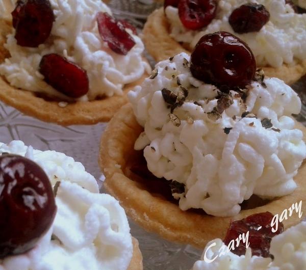 Suche składniki ciasta mieszamy razem, a następnie dodajemy margarynę startą na tarce o dużych oczkach i rozcieramy razem. Dodajemy żółtko, śmietanę i zagniatamy ciasto - oczywiście szybko, ponieważ jak każde kruche ciasto powinno mieć jak najkrótszy kontakt z ciepłem dłoni. Następnie rozwałkowujemy ciasto na grubość ok. 0,5 cm i wycinamy niewielkie kółka. Foremki do babeczek smarujemy margaryną i posypujemy bułką tartą, a następnie do każdej wkładamy kółeczko i delikatnie dociskamy. Pieczemy przez 15 minut w piekarniku nagrzanym do 180 stopni.Fetę rozgniatamy, a następnie łączymy ze śmietaną, czosnkiem i pieprzem - mieszamy aż powstanie jednolita masa. Przekładamy ją do rękawa cukierniczego i wyciskamy na babeczki. przystrajamy żurawiną, wiśniami oraz prażonym sezamem, słonecznikiem lub grubym pieprzem.