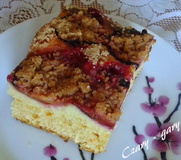 No więc jestem na wakacjach :-) póki co pogoda jest rewelacyjna, pokój w którym mieszkamy nie budzi najmniejszych zastrzeżeń (z balkonu widzę morze :-) ), do plaży mamy jakieś 200 m, dziecko ma apetyt jak nigdy... po prostu pełen relaks :-) Ale zanim tu przyjechaliśmy wykopałam z lodówki kilka rzeczy, z których upiekłam taką oto drożdżówkę na drogę :-) właściwie jechaliśmy w nocy, więc była następnego dnia do kawy :-) Polecam ją Wam, zwłaszcza teraz w sezonie śliwkowym - robi się ja szybko i jest przepyszna...SKŁADNIKICiasto:4 szklanki mąki pszennej1 szklanka cukru1 szklanka gęstego jogurtu naturalnego50 g drożdży120 g masła3 jajka1 duży cukier wanilinowyKruszonka:2 łyżki mąki pszennej2 łyżki cukru1/2 łyżeczki cynamonu25 g masładodatkowo: śliwki