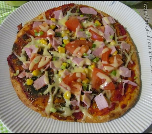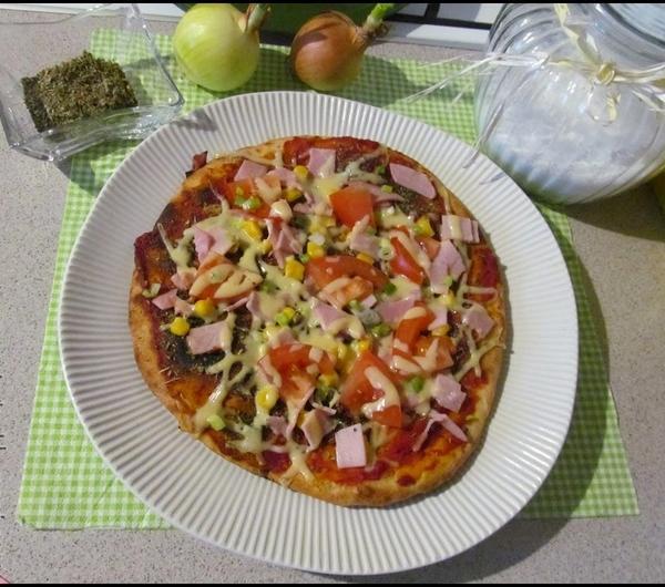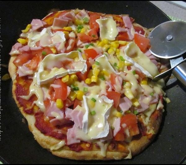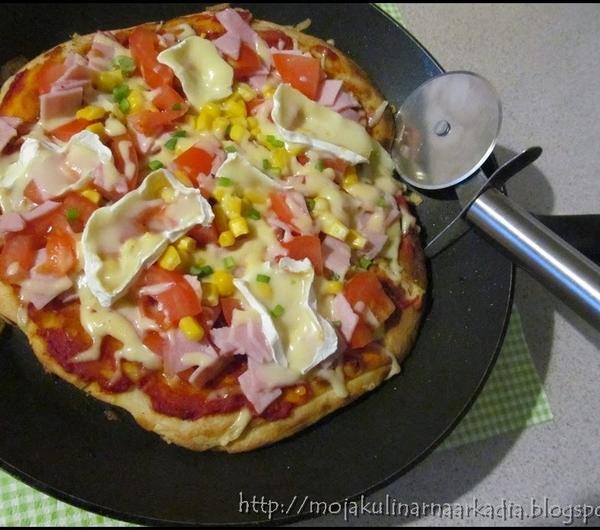 Już jakiś czas myślałam nad tym, by zrobić pizzę z patelni . Zawsze ciekawiło mnie jaki byłby efekt. Wyszła smaczna, chrupiąca i kolorowa, taka... wiosenna. Nieskromnie przyznam, że na szczęście nie muszę liczyć kalorii, dlatego taką pizzę