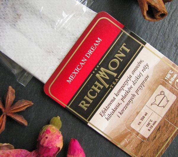 saszetka herbaty Richmont "Mexican Dream"3 kwiaty suszonego hibiskusa + 1/2 szklanki zimnej wodykawałeczek kory cynamonu1 gwiazdka anyżu2 łyżeczki miodu