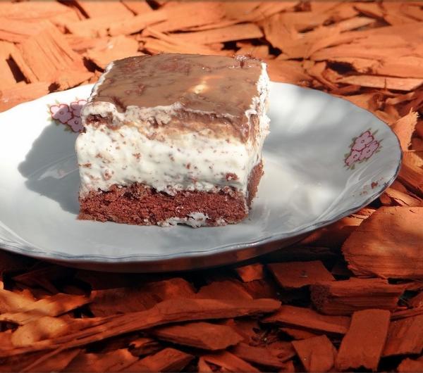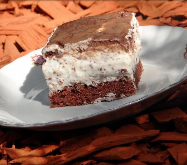 śmietankową i przykrywamy drugim plackiem.Polewamy polewą i wstawiamy do lodówki najlepiej na całą noc .Smacznego