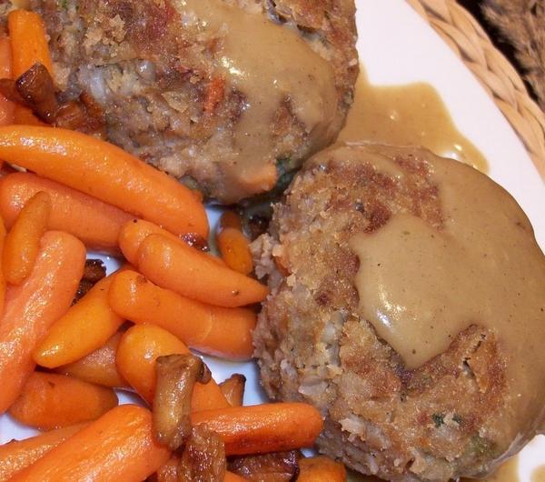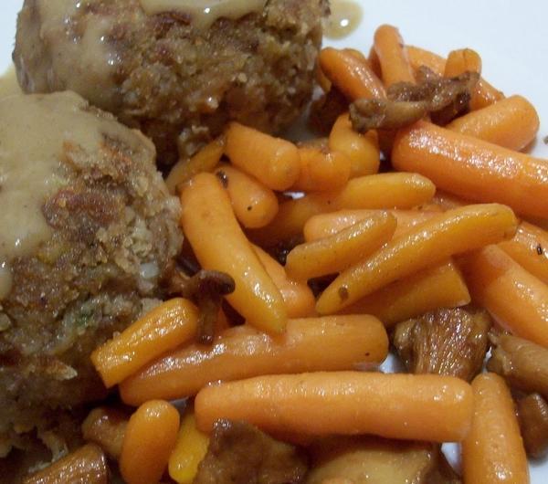 Od dawna za mną chodziły kotlety z kaszy gryczanej, a w zamrażalniku miałam jeszcze trochę grzybów z zeszłorocznych zbiorów. Postanowiłam połączyć te dwa, jakże pasujące do siebie składniki. Wyszło smacznie, zdrowo i w miarę dietetycznie.Składniki na 4 porcje (8 sztuk kotletów):-0,5kg mięsa mielonego z indyka-2 torebki prażonej kaszy gryczanej-1 duża cebula-1 starta marchew-1 jajko-100g bułki tartej-pół pęczka zielonej pietruszki-5 łyżek oleju-pieprzziołowy-sólPrzygotowanie:Kaszę gryczana gotujemy ok.15 minut. Odcedzamy. Cebulę podsmażamy na patelni. Gdy się zarumieni, dodajemy startą marchewkę. Podsmażamy ok. 5 minut. Odstawiamy do ostygnięcia. Wszystkie ww. składniki mieszamy w misce. Następnie formujemy kotlety o średnicy ok. 5cm. Smażymy na małym ogniu po 10 minut z każdej strony.Składniki na sos grzybowy:-200g mrożonych podgrzybków-0,5l bulionu drobiowego-50g maki-natka pietruszki-pieprz-sólPrzygotowanie sosu:Podgrzybki gotujemy ok. 15 minut w bulionie drobiowym. Wywar doprawiamy pieprzem i solą, dodajemy posiekaną zieloną pietruszkę. Na patelni zapalamy mąkę, tzn. podsmażamy ją na bardzo małym ogniu bez dodatku tłuszczu, ciągle mieszając. Dodajemy stopniowo do sosu. Całość gotujemy kolejne 10 minut.Jako dodatek do potrawy podałam glazurowaną mini-marchewkę z kurkami.Przygotowanie:Na patelni rozpuszczam 2 łyżki masła. Wrzucam po ok. 150g marchewek i kurek. Doprawiam solą i pieprzem. Następnie dodaję 1 sporą łyżkę cukru. Całość podsmażam ok.5 minut i gotowe.